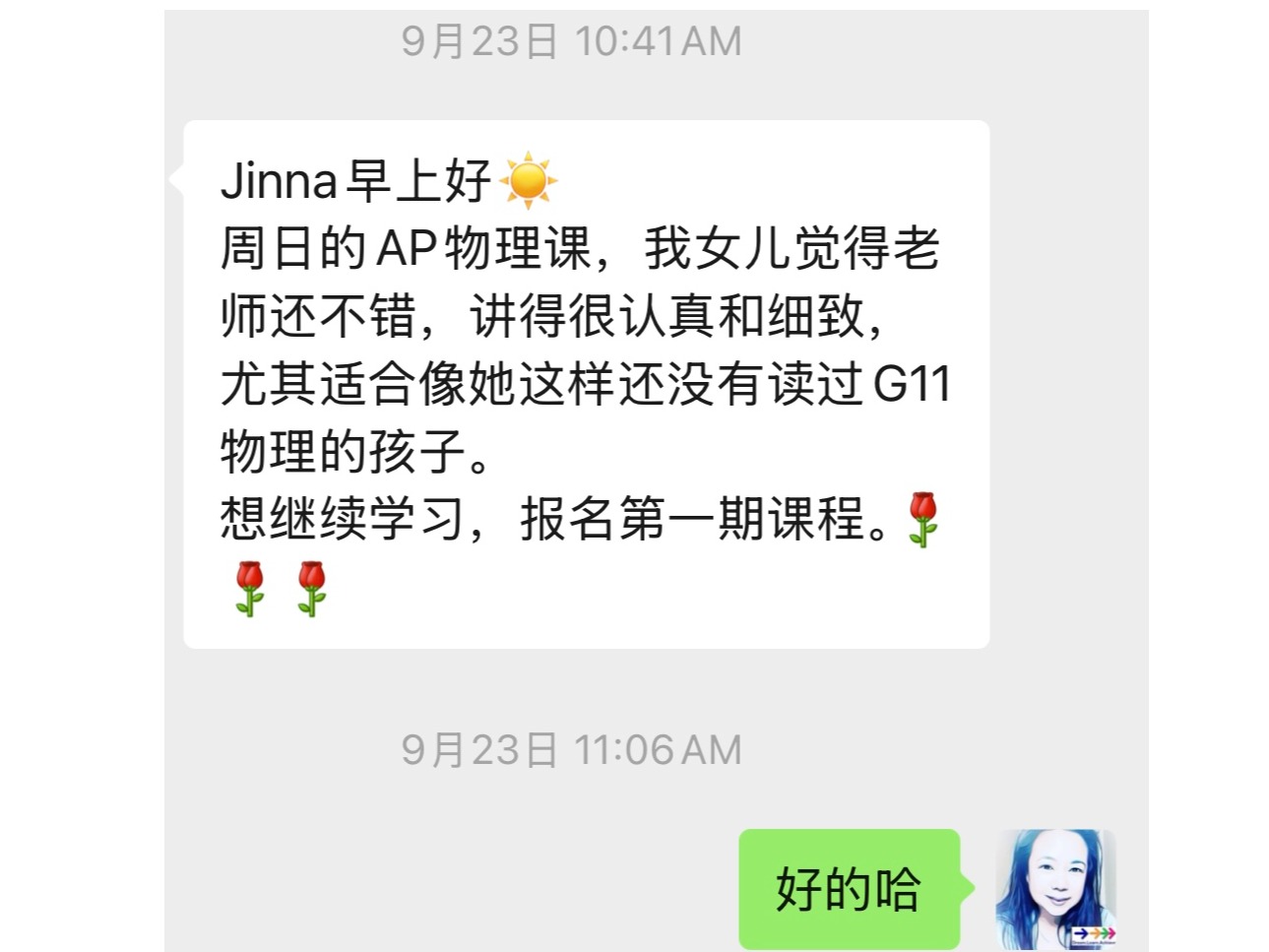 “非常欣赏老师的启发孩子的物理思维,很负责的老师,教的仔细又认真!”